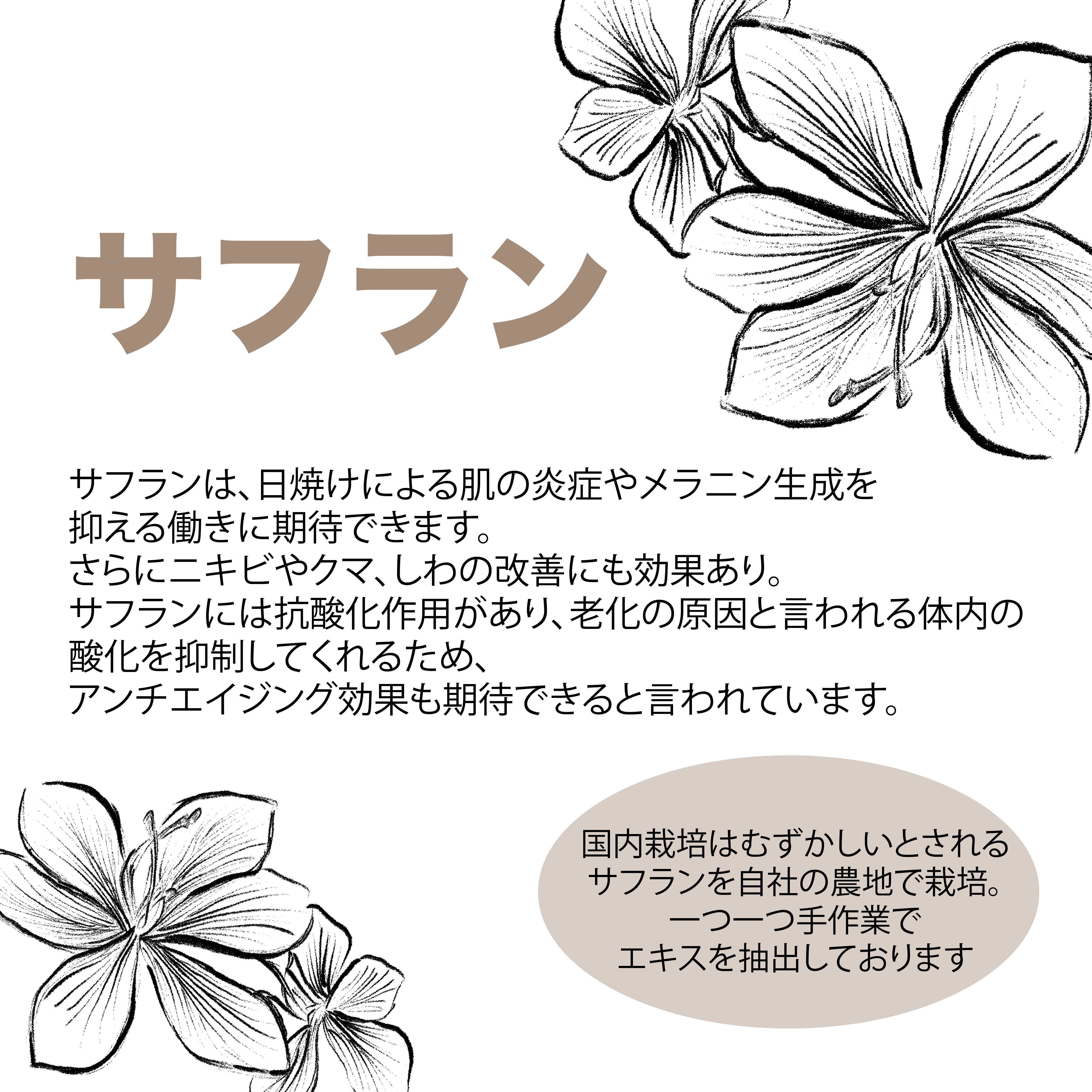 国内では栽培が難しいとされるサフランを自社で栽培し、一つ一つ手作業でエキスを抽出しております。
